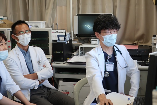 当センターの歴史は古く、地域の方々から頼りにされてきた病院です。患者さんの多くがご高齢で、自宅や施設から救急搬送されて入院となるケースも多いです。研修医は希望すればそのファーストタッチから身体診察、各種の検査、患者さんや付添者からの情報収集やIC取得などの経験を積むことができます。複数の疾患・病態を抱える患者さんが多く、common diseaseとはいえ実際の状況はさまざまであり、入院というイベント自体にもさらなるADL低下のリスクが伴うなか、病態の連鎖を止められず、急性期を乗り越えてもらうことの難しさを実感することもあります。また、なんとか急性期を乗り越えてもこんどは転退院先の調整が困難となる事例も多く、地域医療の体制や家庭の問題を直に感じるケースも多いです。